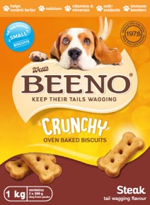 BEENO’s classic bone shaped biscuits steak flavour are delicious and nutritious, as well as having the added benefit of helping to reduce tartar build-up on dog’s teeth.