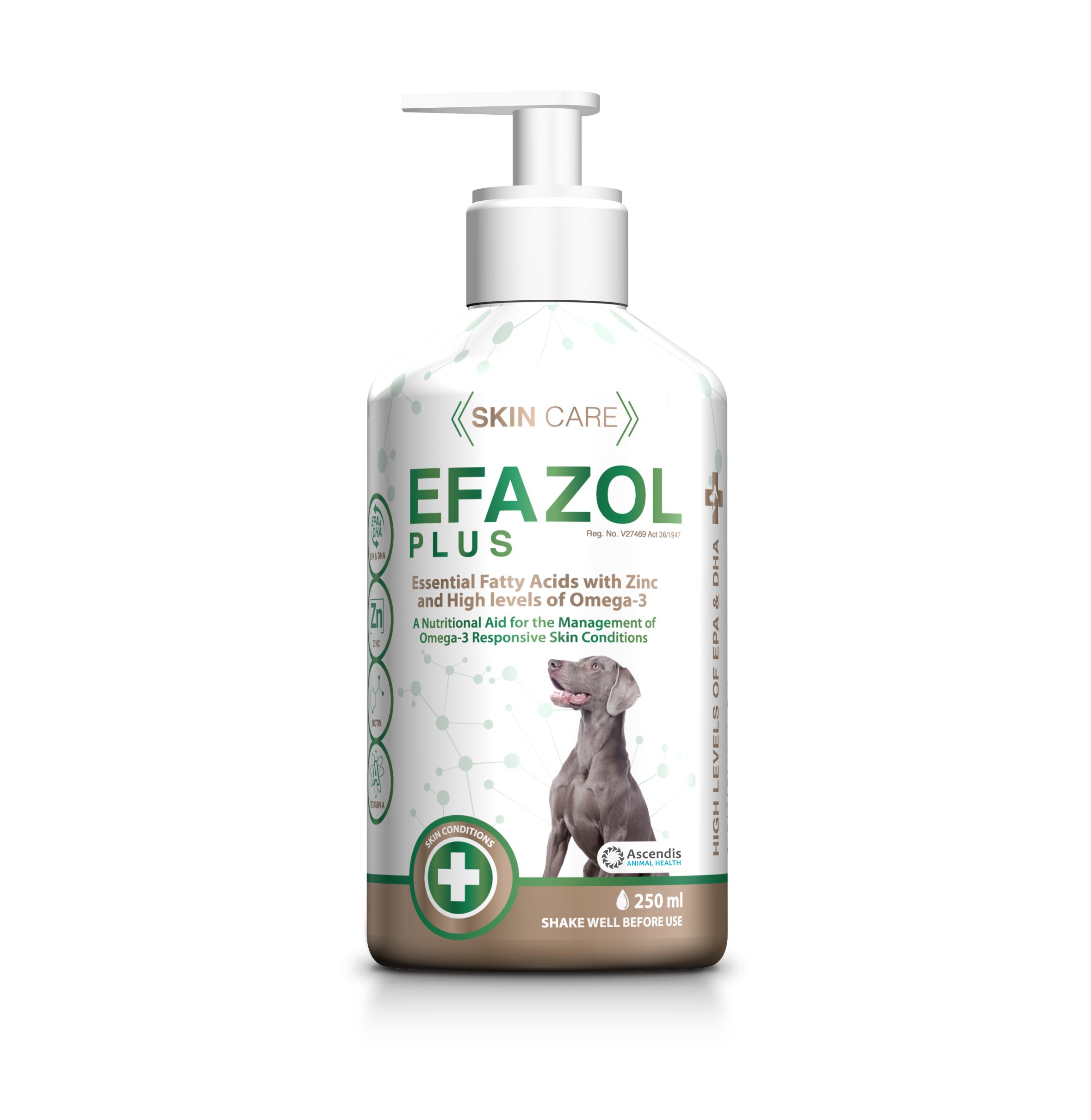 Filled with essential Fatty Acids, Vitamins, Zinc and high levels of EPA and DHA, this liquid formula comes in an easy to use pump bottle design. Now all you have to do is review the chart, shake well and pump Efazol Plus onto their food daily. I know – easier probably doesn’t exist._x000D_
