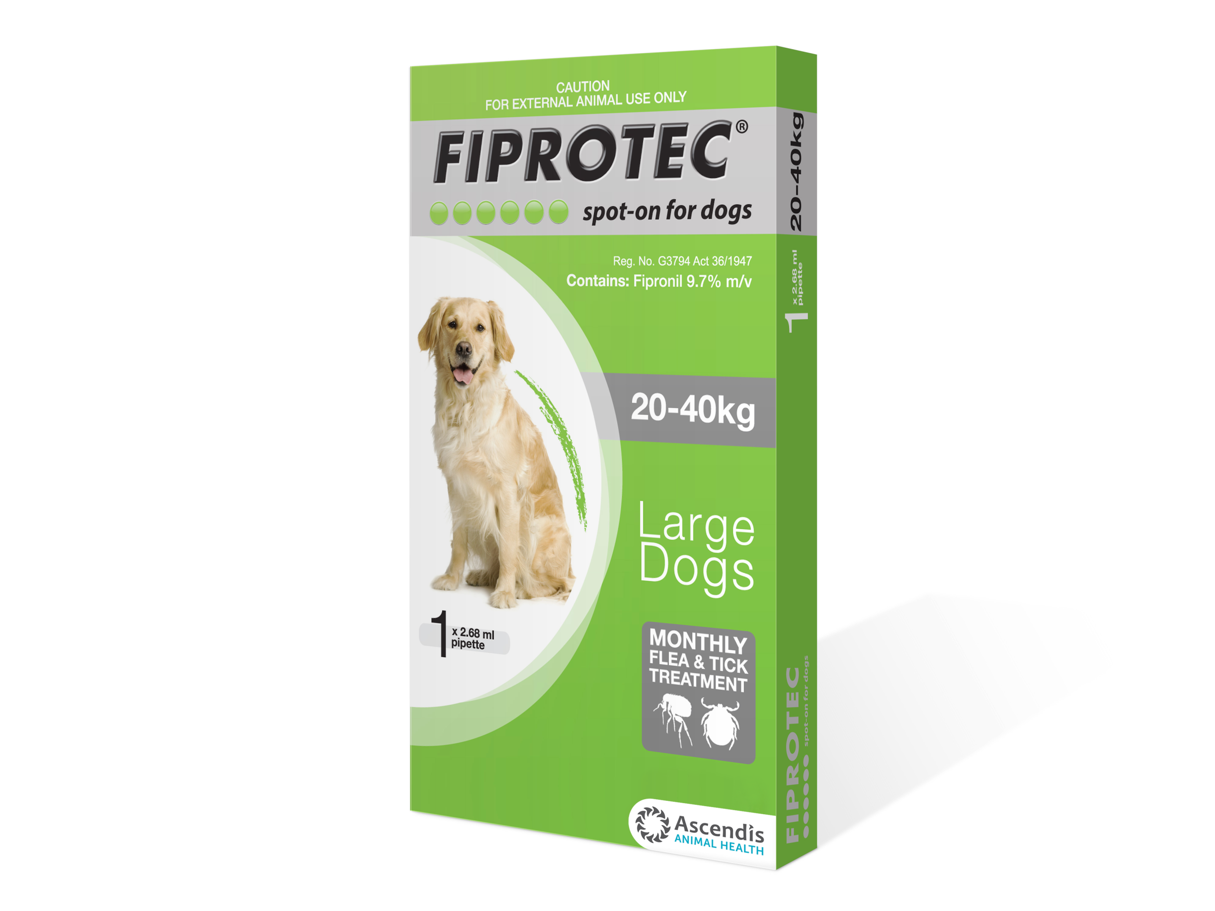 Fiprotec is a monthly topical treatment and prevention of fleas and ticks suitable for puppies and dog’s. It contains the active ingredient Fipronil 9.7% m/v. Fipronil will spread over the entire coat in the oils of the skin and hair follicles and will kill all fleas within 24hours of application and ticks within 48 hours. Fiprotec has a residual effect which keeps killing fleas for up to 5 weeks and tick for up to 2 weeks._x000D_