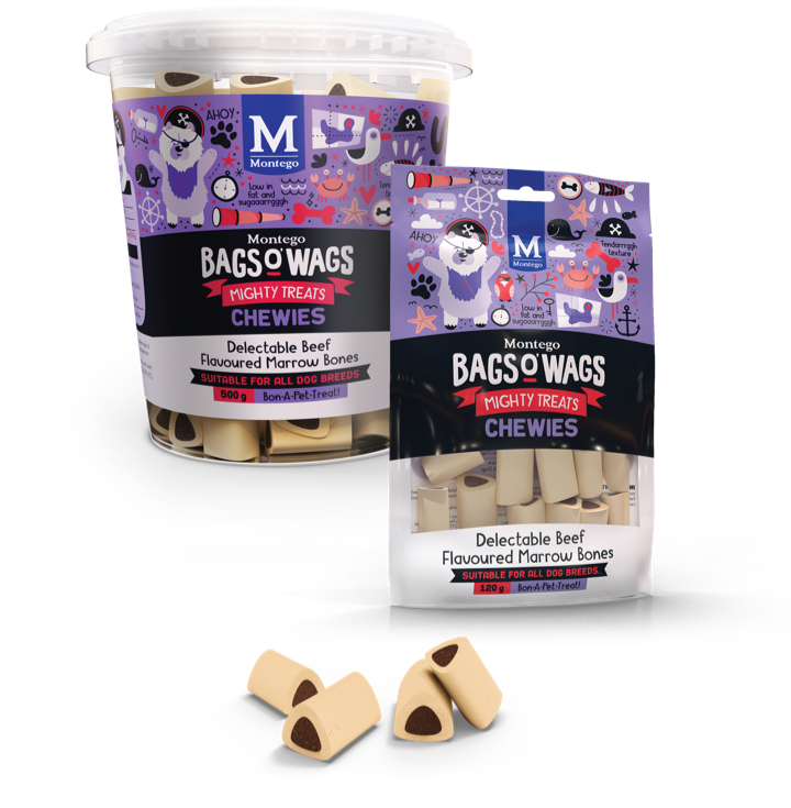 The Bags O’ Wags range is a healthy reward for good behaviour. a tempting incentive when training or a between meal-snack. Ideal for daily use, Bags O’ Wags treats makes for the ultimate addition to every Montego Pet Nutrition dry or wet food diet.