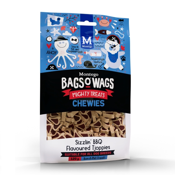 Be the first to review “Montego Bags O’ Wags Sizzlin BBQ Tjoppies 120g”