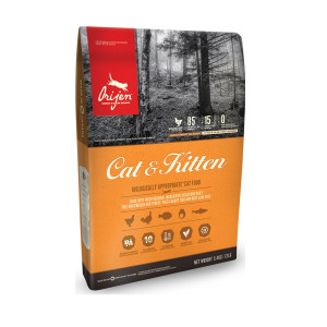 Orijen Cat & Kitten Food is intended for cats of ALL LIFE STAGES. Made to mirror the natural diet, this nutrition is packed with an unmatched diversity of fresh ingredients, including free-run chicken and turkey, nest-laid eggs and wild-caught fish._x000D_
