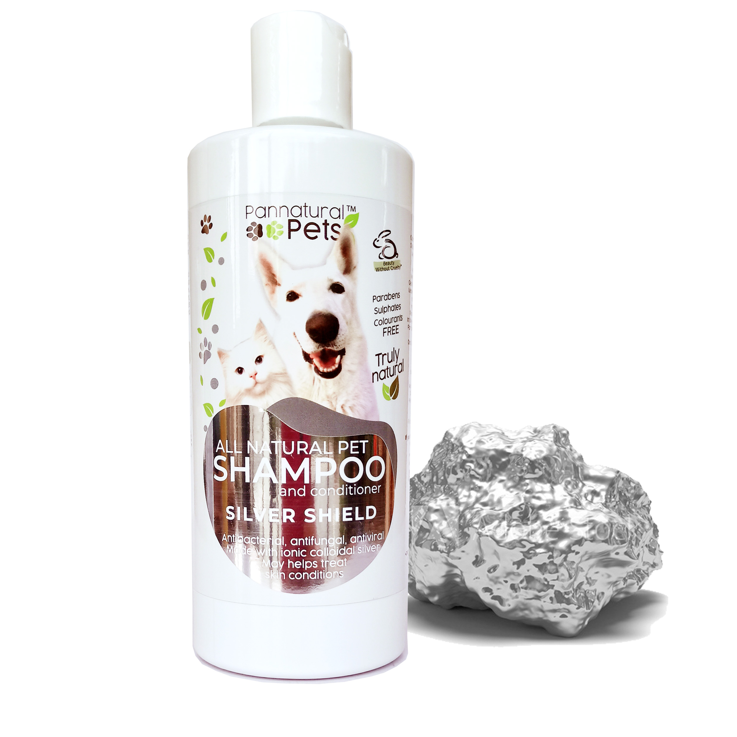 Pannatural Pets Silver Shield Pet Shampoo Discover the benefits of Pannatural Pets all-natural Colloidal Silver Dog Shampoo. Our Ph balanced formula is safe for sensitive skin and for all skin types. It contains pure Colloidal Silver, Antibacterial, Antiviral, Antifungal