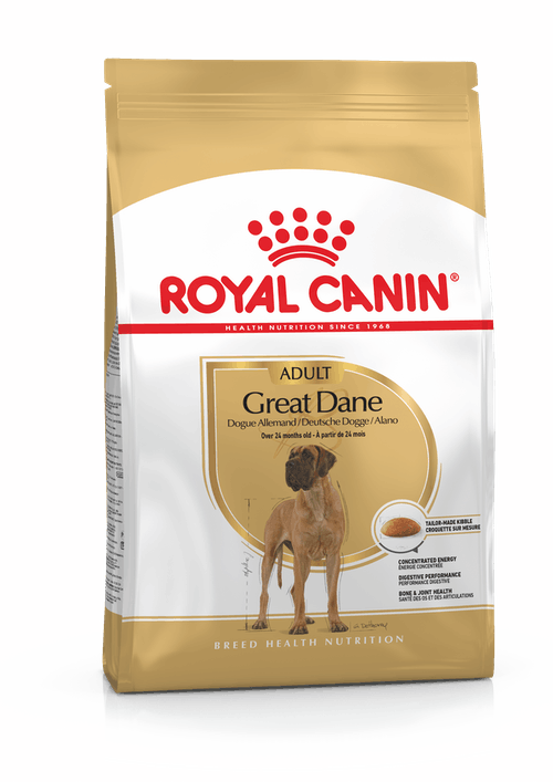 The Royal Canin Great Dane Adult Dog Food is formulated exclusively for pure breed Great Danes over 24 months old. These gentle giants need nutrition that is specifically designed to support their bigger bodies and high energy levels.