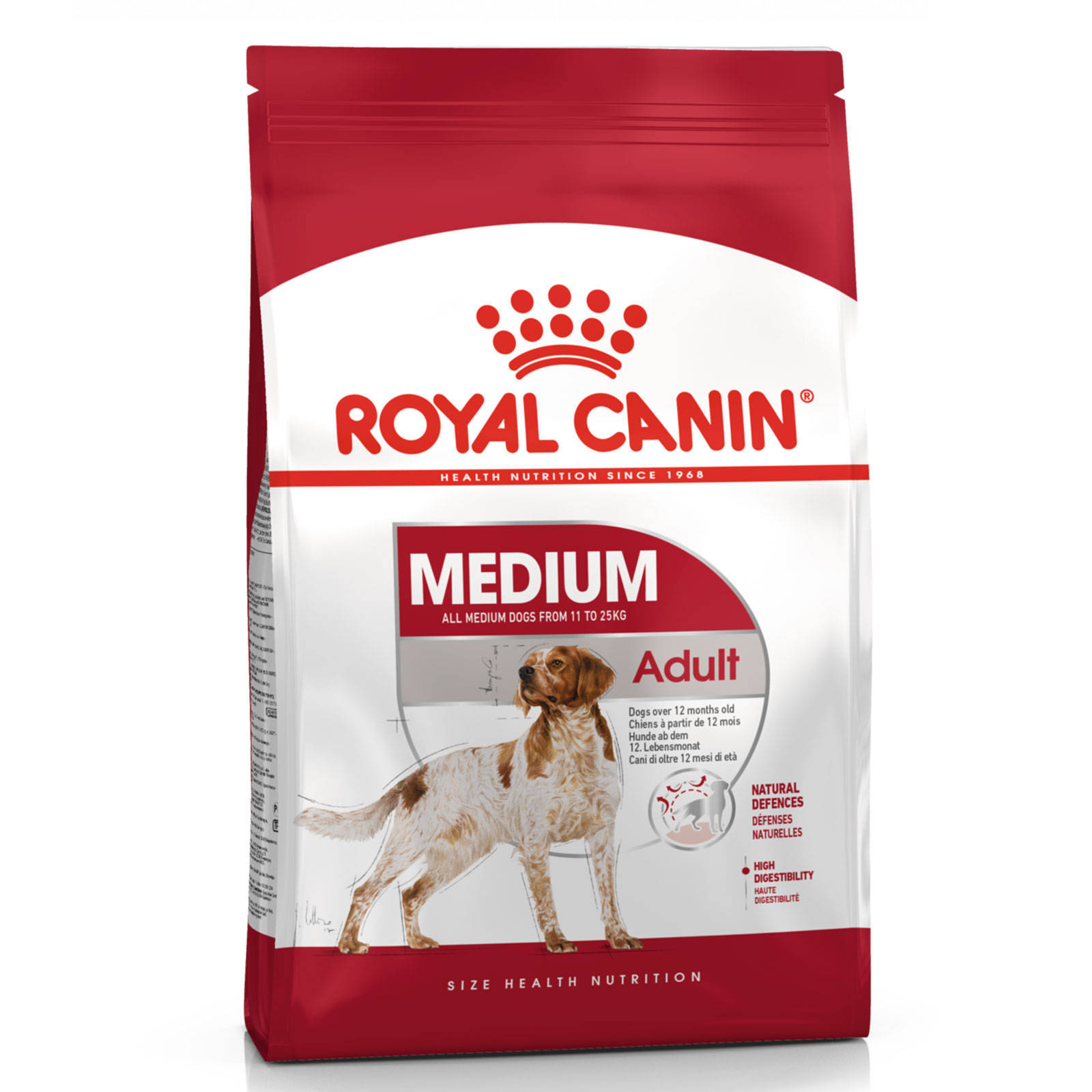 The Royal Canin Medium Adult Dog Food is designed for adult medium breed dogs (from 11 to 25 kg) – From 12 months to 7 years old._x000D_