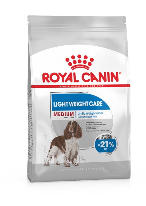 The Royal Canin Medium Light Weight Care Adult Dog Food for adult and mature medium breed dogs (from 11 to 25 kg) – Over 12 months old – Dogs with a tendency to gain weight._x000D_