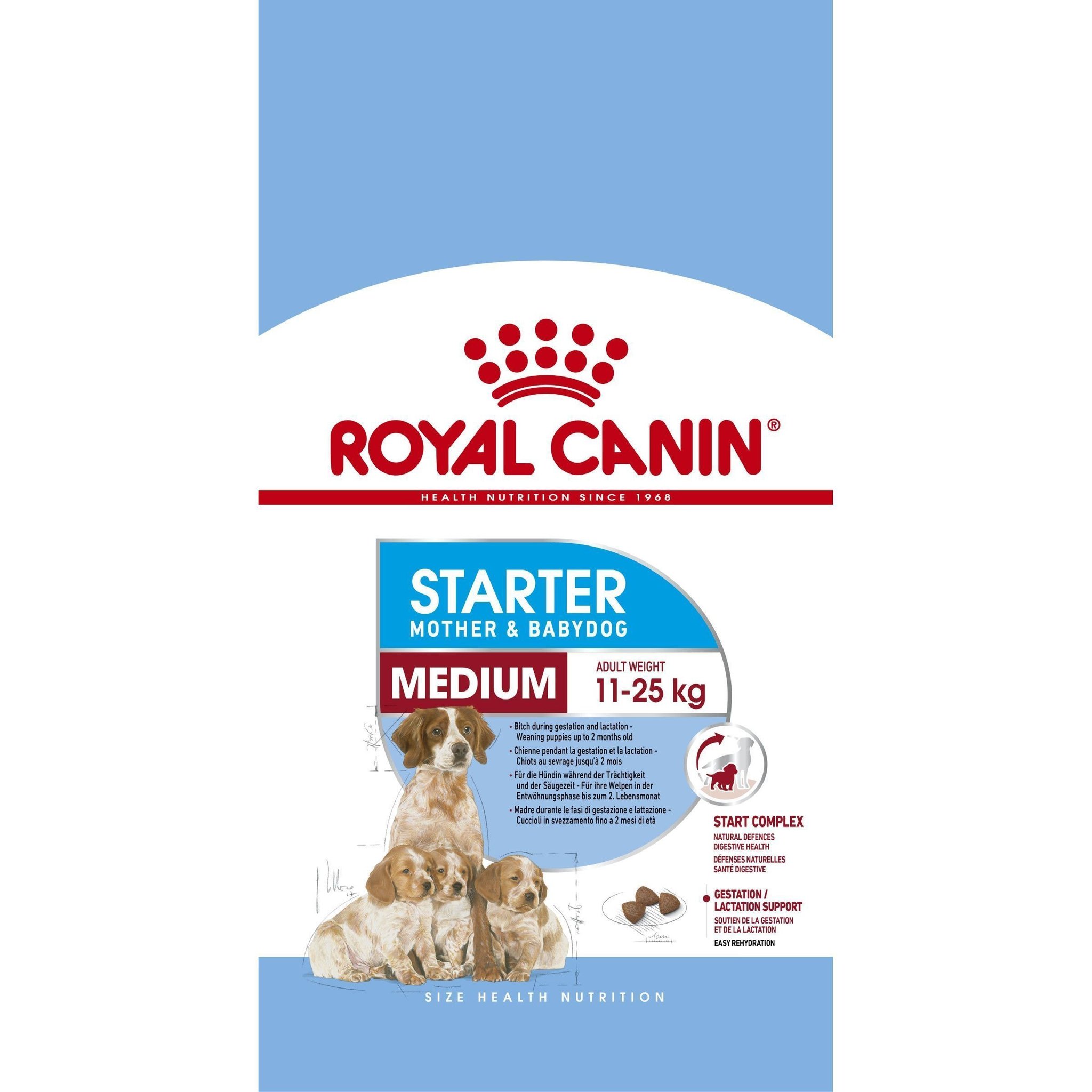 The Royal Canin Medium Starter Mother & Babydog Food is designed for medium breed mothers (adult weight between 11 and 25 kg) from the end of gestation (3rd trimester) and during lactation, and young puppies up to 2 months.