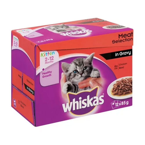 Whiskas 2-12 months includes calcium to support the development of strong bones and vitamin E & minerals to help support a healthy immune system.